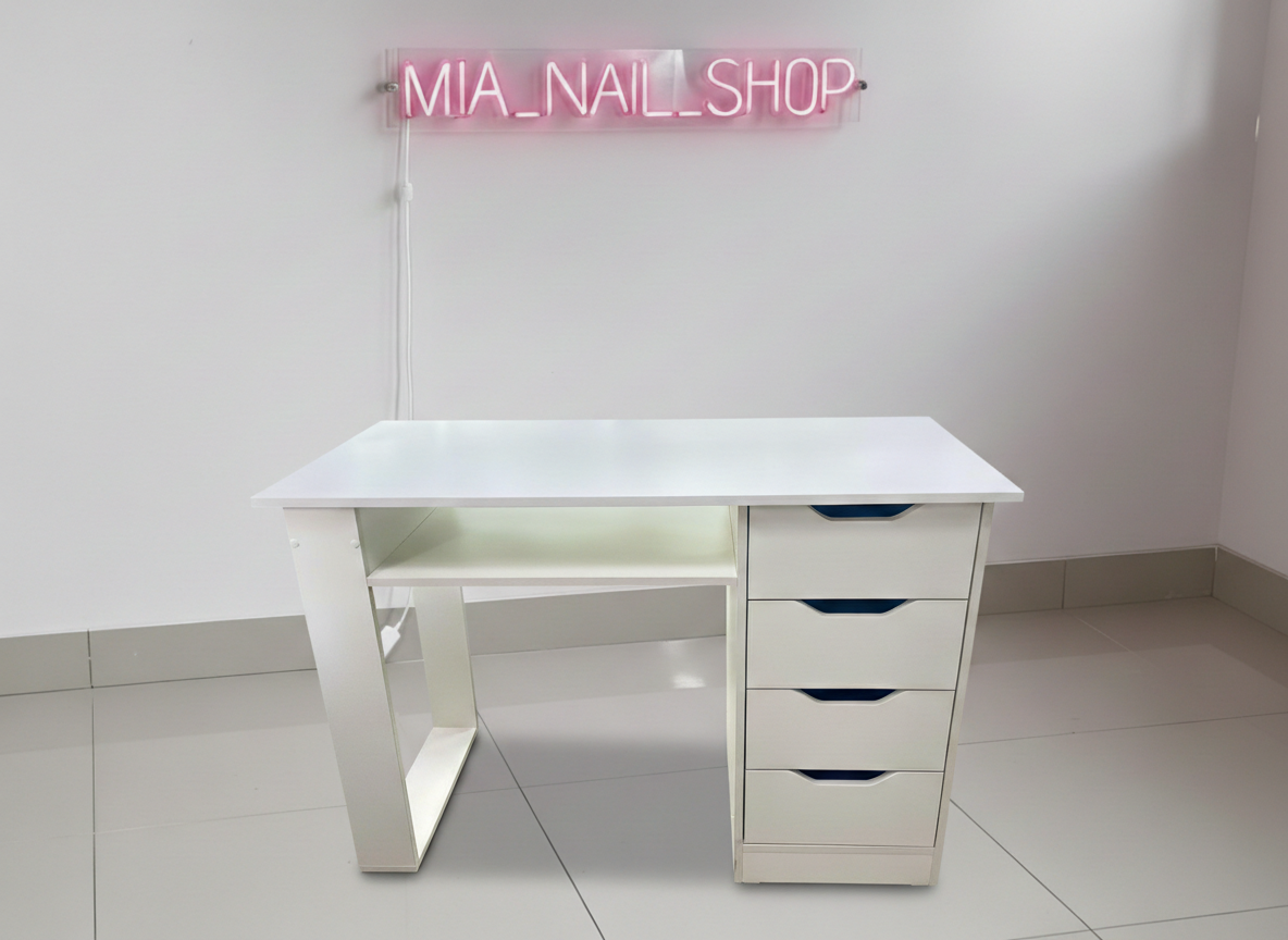 · Конструкция: Четыре выдвижных ящика, расположенных вертикально с одной стороны, полка по центру.