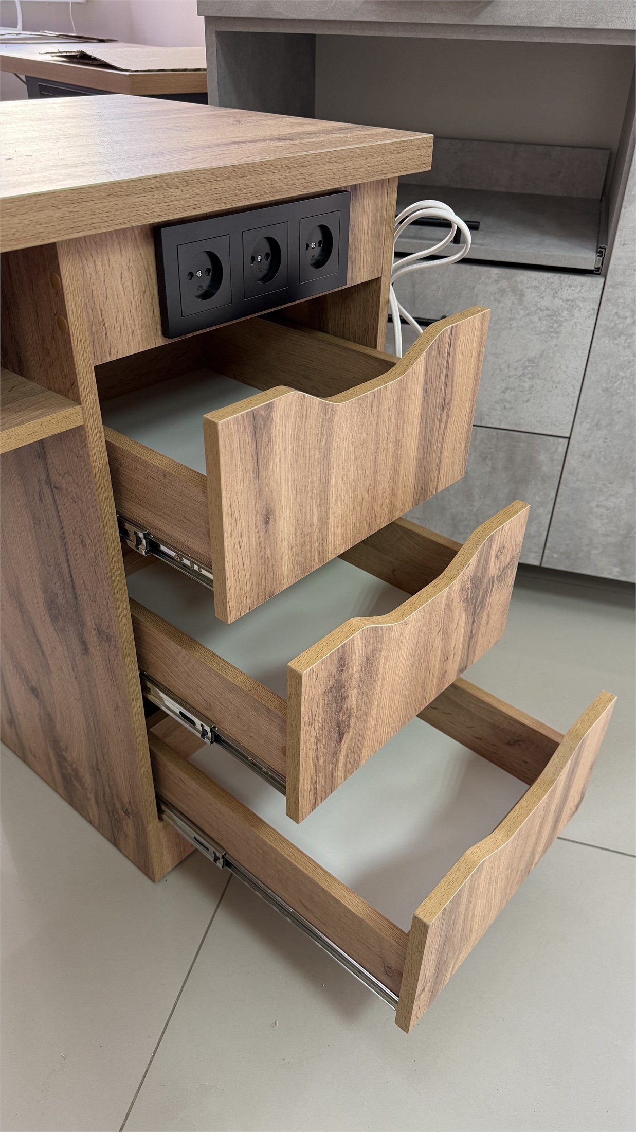 · Конструкция: 3 выдвижных ящика справа..