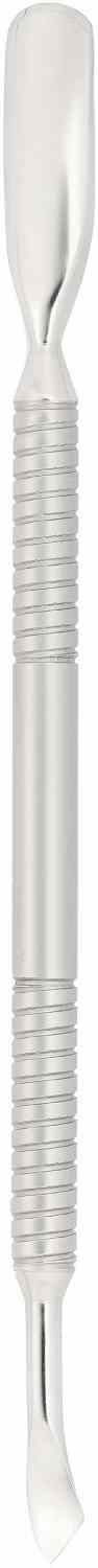 Пушер стандартной длины с лопаткой и топориком. Лопатка предназначена для отодвигания кутикулы с целью дальнейшего удаления ножницами или кусачками. Топорик хорошо подходит для очистки ногтя от птеригия и обработки поверхности у боковых валиков и внутренней стороны свободного края.