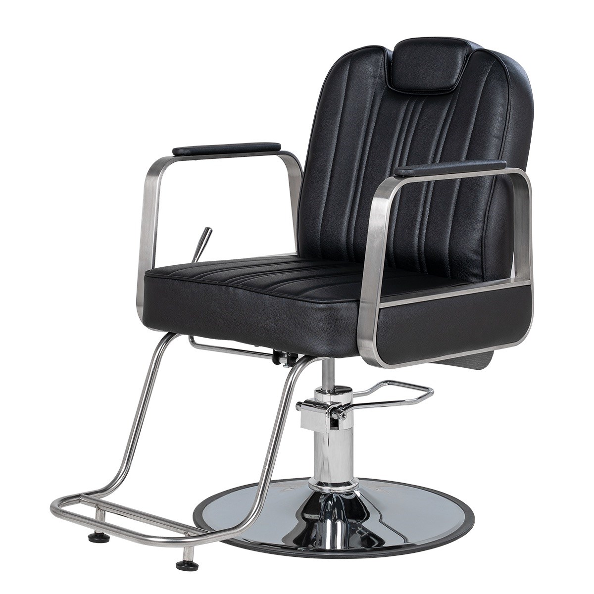 Спинка парикмахерского кресла откидывается, чтобы посетитель мог принять полулежащее положение. Выдвижной подголовник поддержит голову и шею клиента. Изогнутые подлокотники сделаны из полированной стали с кожаными накладками и декоративными вставками в цвет кресла. Широкая комфортная подножка из высокопрочной стали – ещё одно практичное дополнение. Она предупредит переутомление ног в течение длительных процедур.