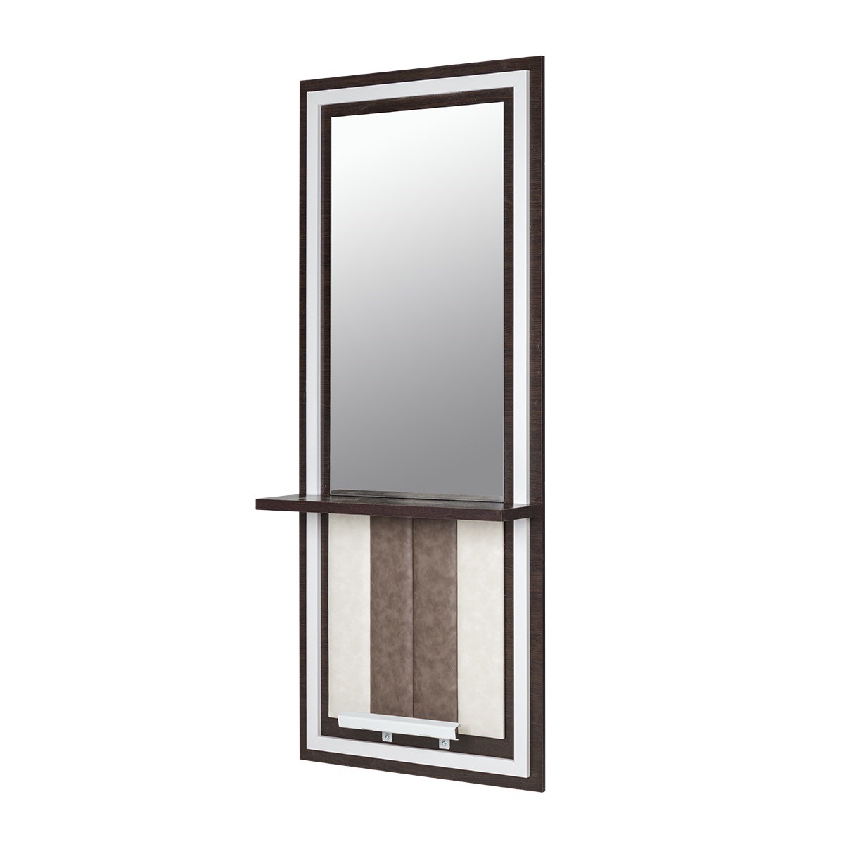 Одностороннее парикмахерское зеркало Диамант позволит правильно и удобно оборудовать рабочее место парикмахера. Оно комплектуется прямоугольным зеркальным полотном на прочном каркасе из ЛДСП, удобной полкой и подставкой для ног. Часть каркаса под полкой обшита экокожей, что подчеркивает эксклюзивный дизайн модели. Зеркальная поверхность обладает устойчивостью к тепловым воздействиям и коррозии. Ее можно очищать с помощью специальных моющих средств для зеркал и стекол. Благодаря оптимальным размерам зеркала обеспечивается необходимый угол обзора для мастера и клиента в процессе работы.