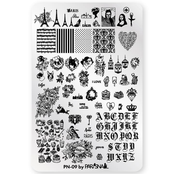ParisNail Пластина для стемпинга PN-09 (9.5*14.5 см)