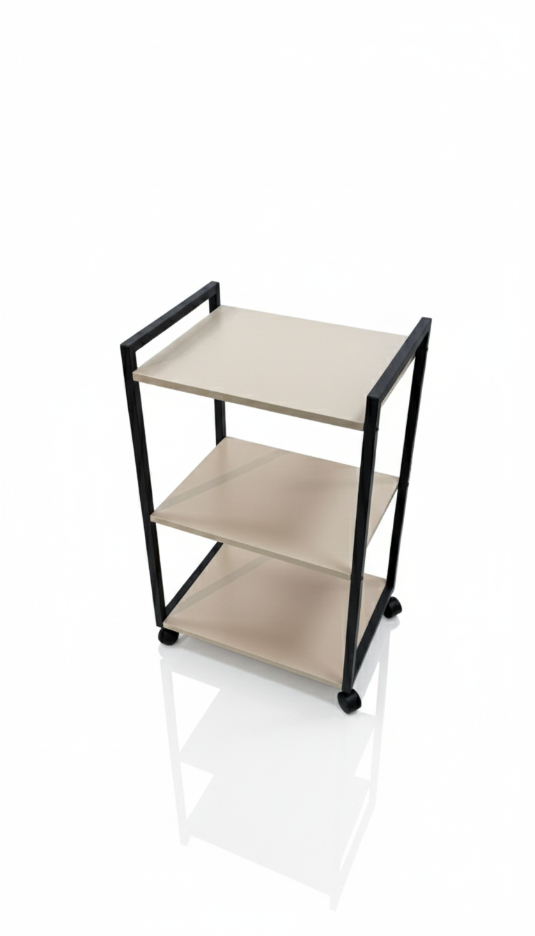 Этажерка на колесиках — неотъемлемый атрибут в кабинете каждого уважающего себя мастера из бьюти-сферы. Стеллаж позволяет рационально организовывать рабочее пространство благодаря трем вместительным полкам. Косметологическая этажерка оснащена колесиками, с помощью которых можно регулировать ее высоту на неровной поверхности пола. Тележка-этажерка компактна и не занимает много места, поэтому можно легко и удобно разместить ее даже в небольшом кабинете. Она подходит в качестве тележки для парикмахера, массажиста, косметолога, мастера по маникюру, педикюру, шугарингу, ботоксу и как тумбочка для косметики.