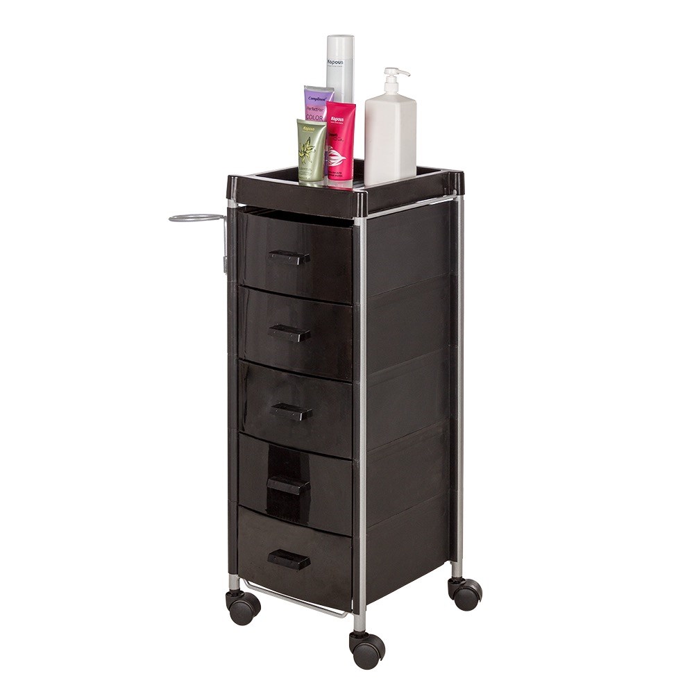 На верхней полке можно разложить инструмент первой необходимости. Остальные приспособления и косметологические средства можно компактно разместить в ящиках. С маневренными колесами мастер может перемещать парикмахерское оборудование по рабочей зоне. Благодаря компактным размерам тележка подойдет даже для помещений с малой площадью.