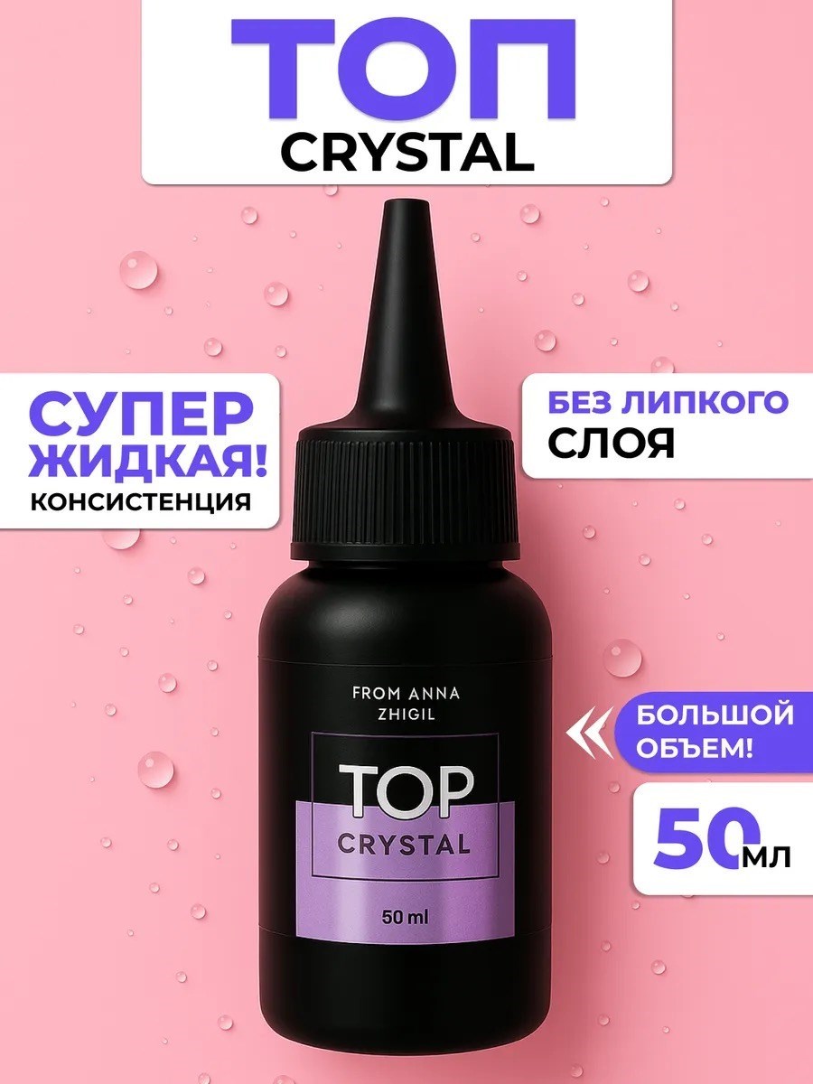 Топ с зеркальным блеском сохраняется до 8 недель. Crystal Анны Жигиль - это завершающий шаг в создании идеального маникюра!